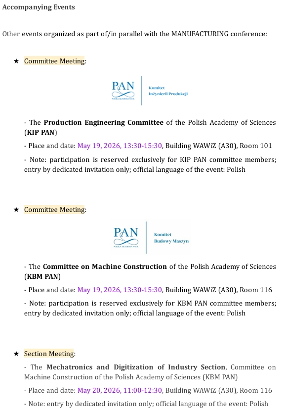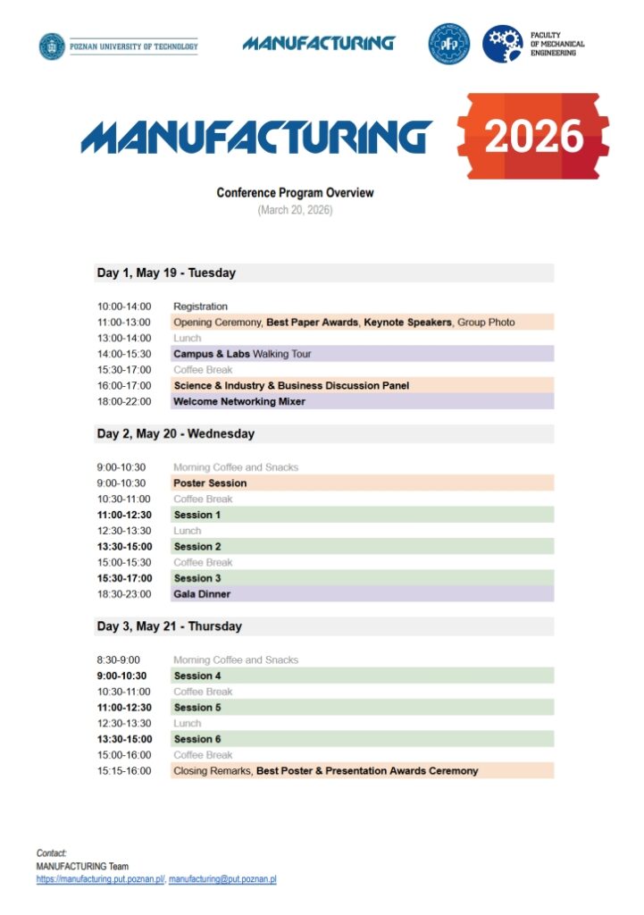MANUFACTURING2026 2026. Site built on the servers of Poznan University of Technology. All rights reserved.